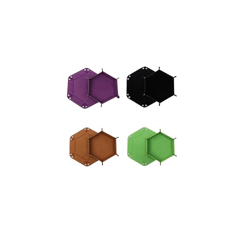 Set of 4 Hexagon Cube Plates - Foldable PU Leather & Velvet Cube Mat - Dice Tray/Dice Mat for DND, RPG, Dungeons & Dragons, Tabletop - 4 Colours, Portable (Black, Brown, Purple, Green)