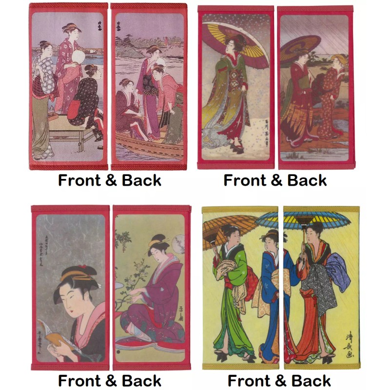 SET of 4 Japanese Rice Paper Wallets (Bijin, Rainy, Book & Geisha) Made in Japan