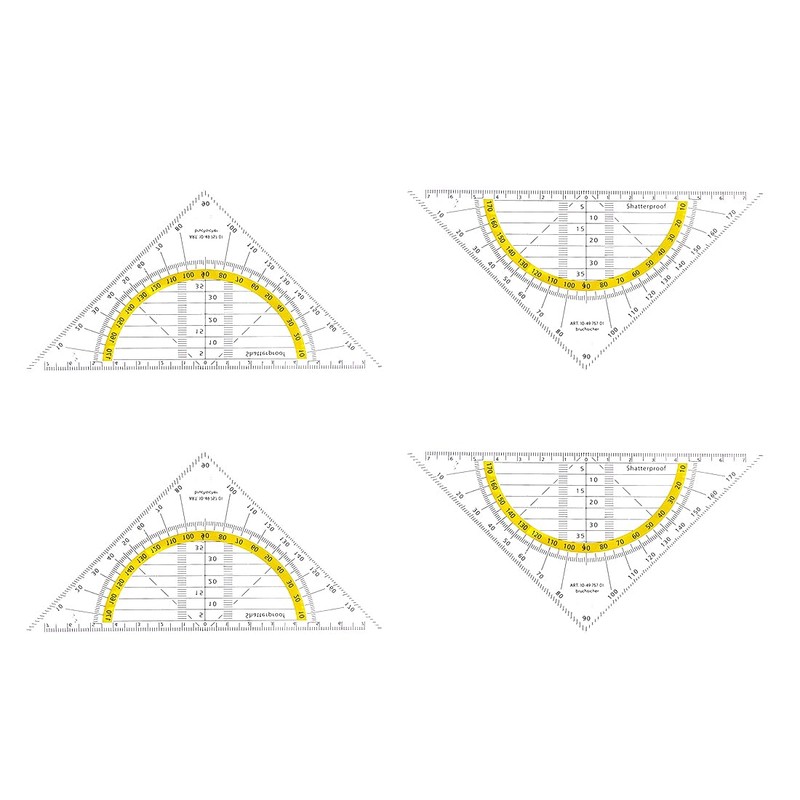 Set of 4 Plastic Set Squares 16cm Shatterproof Clear