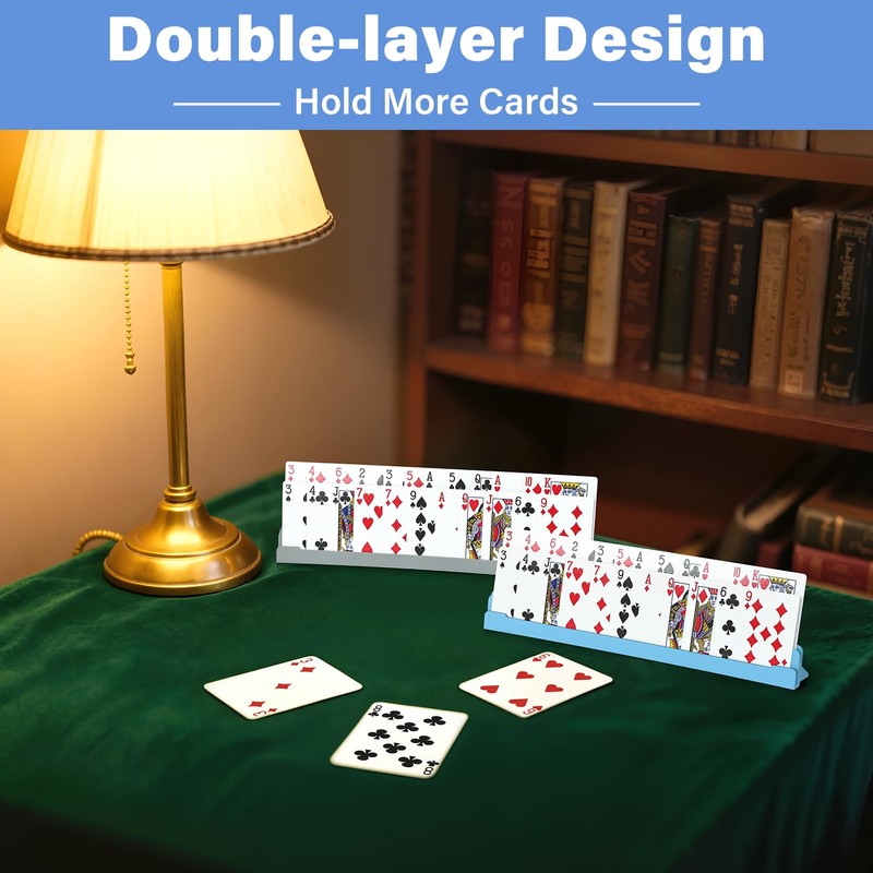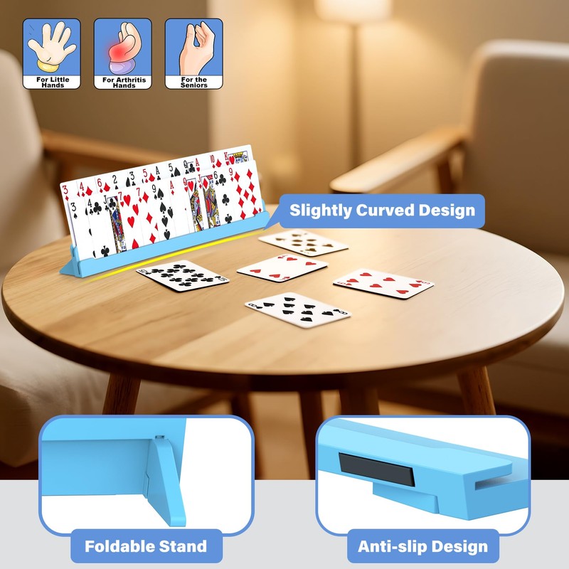 - Hands-Free Focus on Fun – The curved, double-layer design holds multiple cards securely while letting them slide in/out smoothly. Perfect for games requiring many cards! No more tired hands—just pure strategy and enjoyment. A thoughtful gift for seniors or small-handed players.