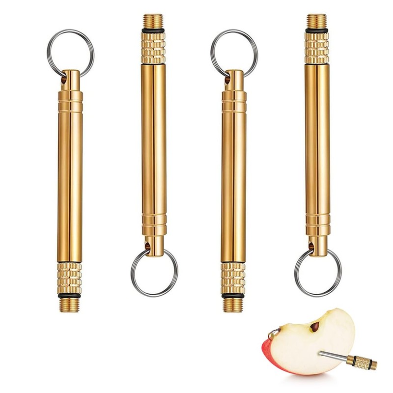 Set of 4 Portable Titanium Toothpicks, Telescopic Waterproof Toothpick Holder, Stainless Steel Set, Metal Fruit Fork Toothpicks, Reusable with Key Ring for Outdoor Camping Picnic On the Go