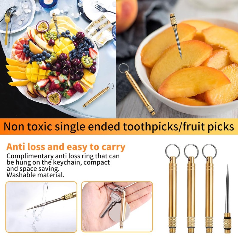 - Toothpick Keychain The compact and lightweight titanium toothpick set is perfect for outdoor activities such as camping, hiking, picnic, cycling and travel. With the handy keyring, you can easily attach the metal toothpicks to your backpack or keychain so they are always at hand.