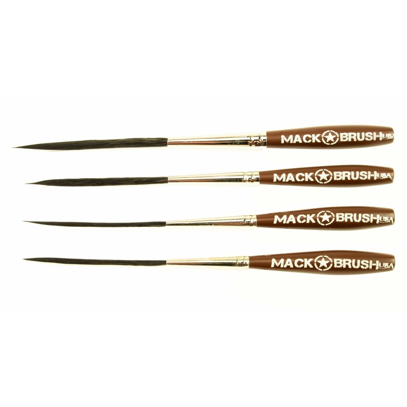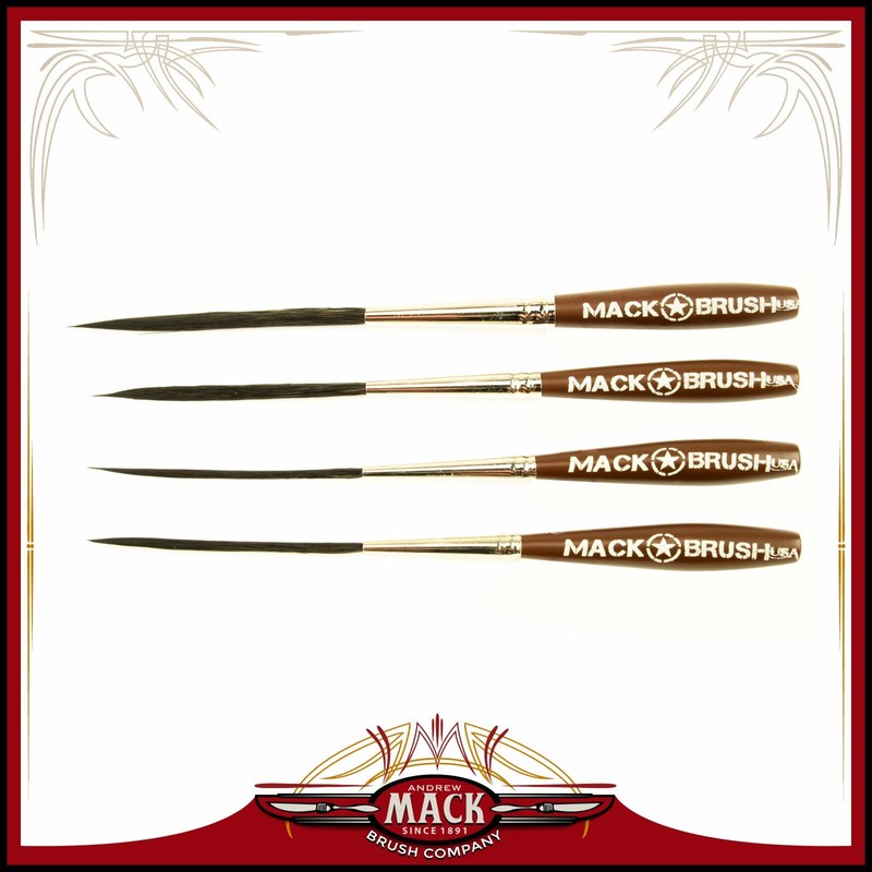 Set of 4 Sizes 000-2 Series Long Bob Pinstriping Scrolling Brush Black Synthetic & Blue Squirrel 1 3/4" Hair Length
