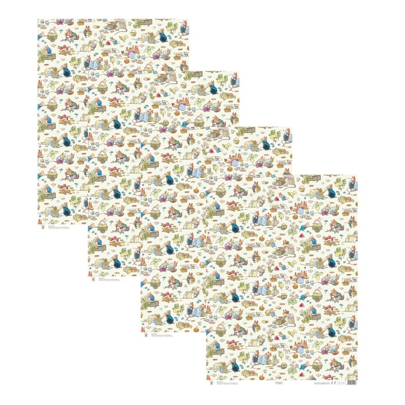 - Brambley Hedge Designs: This set features 4 sheets of wrapping paper showcasing the charming illustrations of Brambley Hedge, a beloved children's book series known for its idyllic portrayal of country life