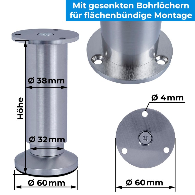 - Versatile and resilient: Choose from a total of 10 lengths and 4 finishes. Modern materials for high loads: Up to 250 kg when screwed in. Floor protectors with height adjustment of +10 mm are only used to compensate for uneven floors.