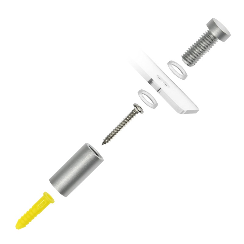 - Hardware Included – Standoff Mounts, Size of Caps Diameter ½”, Screws, Anchors and Washers, Instruction Sheet - Card Inserts NOT Included.