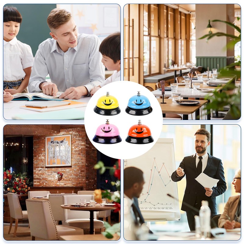 Set of 4 Table Bell, Stainless Steel Table Bell, Call Bell, Training Bell, Hand Bell with Smile Pattern, Hotel Bell, Reception Bell with Crisp Bell, Service Bell for Restaurants, Hotels