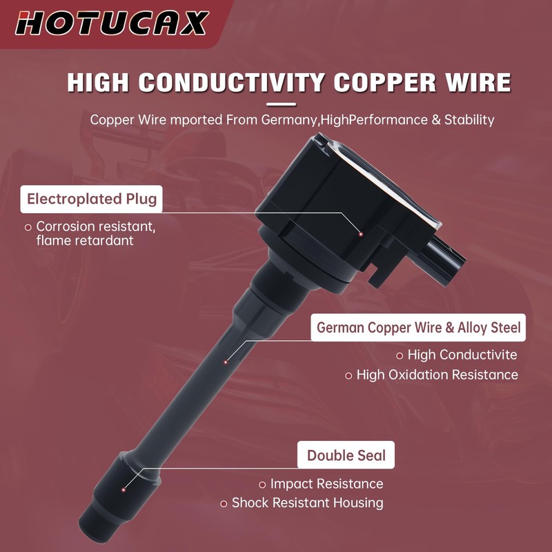 - Premium Performance: HOTUCAX coils and spark plugs are built to achieve or exceed OE specifications, Highly conductive copper wire and high dielectric performance epoxy ensure excellent connectivity and long service life