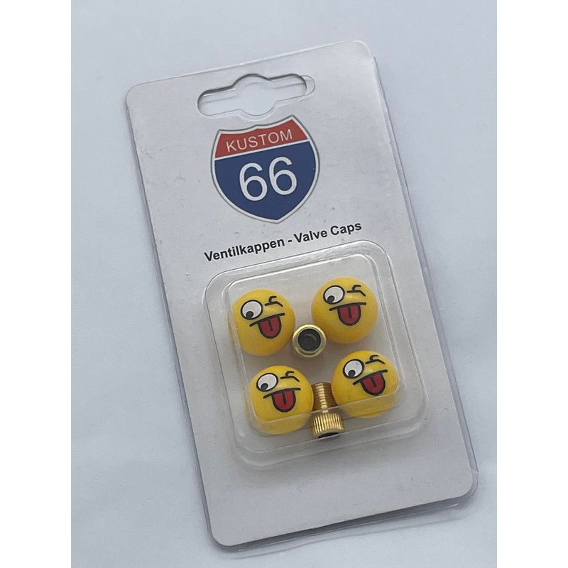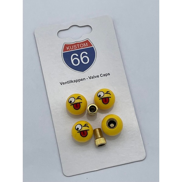 Set of 4 Valve Caps + 2 Bicycle Adapters - Wink with Tongue - Suitable for An...