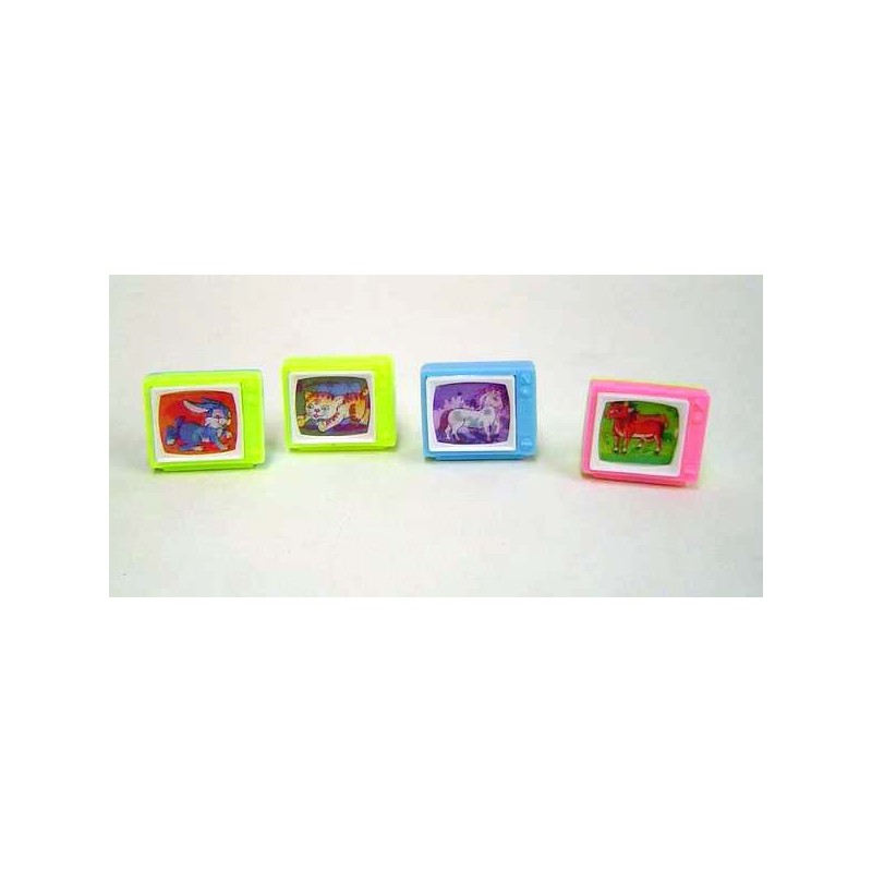 Set of 4 Vintage Flicker TV Pencil Sharpeners We all remember these little classic TV sharpeners The picture Changes when you wiggle the TV This is known as lenticular effect There a number of variations of these so colors and photos may vary 1.75 inches wide by 1.5 tall by 1 deep You get four sharpeners for only $9.98 |