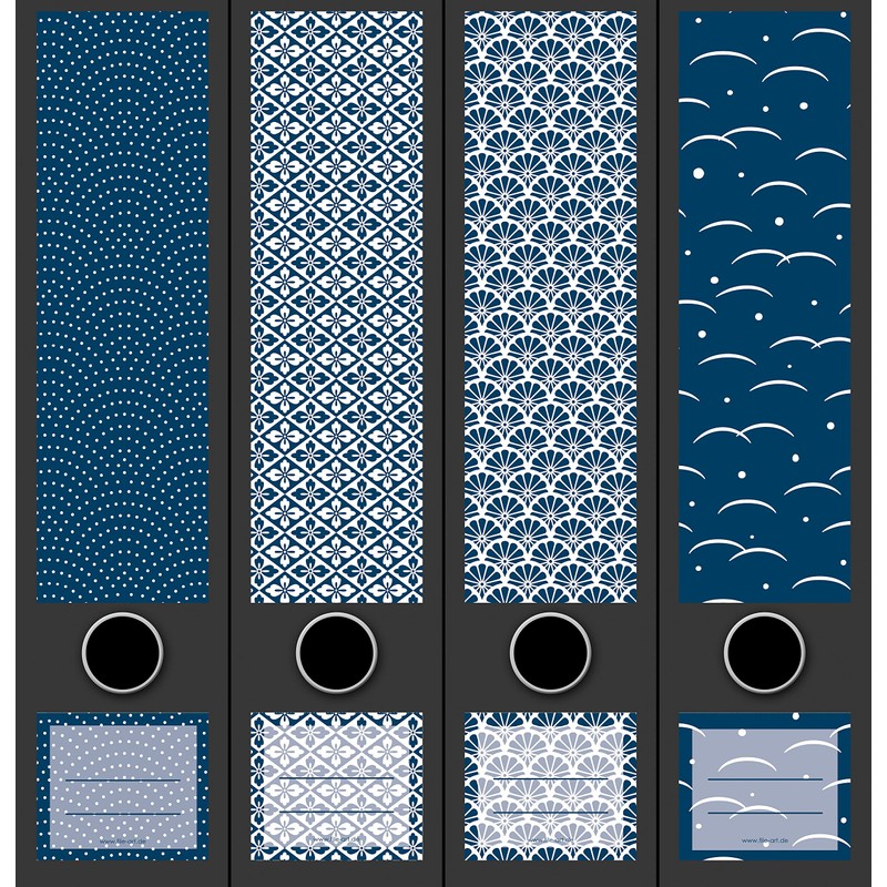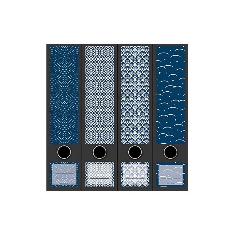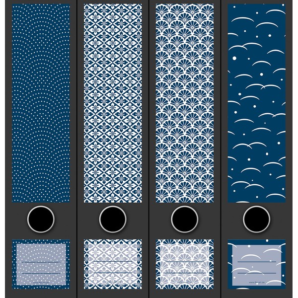 Set of 4 Wide Folder Spines Blue Pattern Blue File Art Folder Labels Decoration 2207, AJ2201