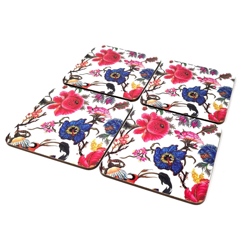 - Beautiful set of 4 coasters with floral Anthina artwork by William Morris.