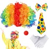 Set of 5 Clown Costume Set, Clown Curl Wig, Clown Nose, Bow Tie, Tie and Gloves, Clown Costume Accessory, Clown Accessories for Carnival Cosplay Party