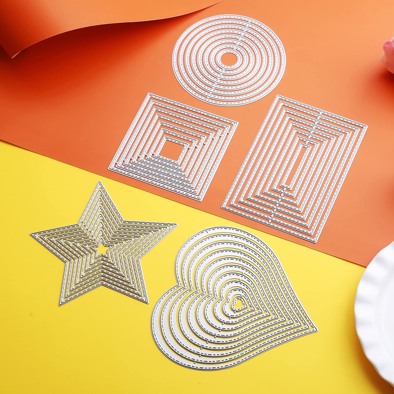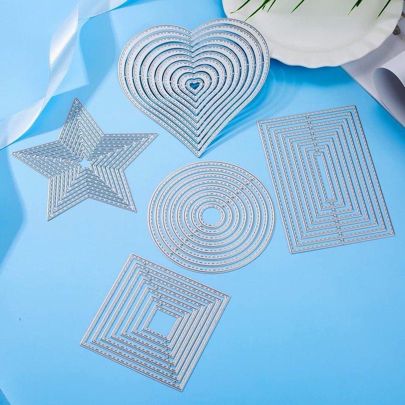 Set of 5 Cutting Dies Geometric Set Cutting Dies Square Rectangular Circle Star Heart Frame Cutting Embossing Stencils for Scrapbooking Album Cards Crafts