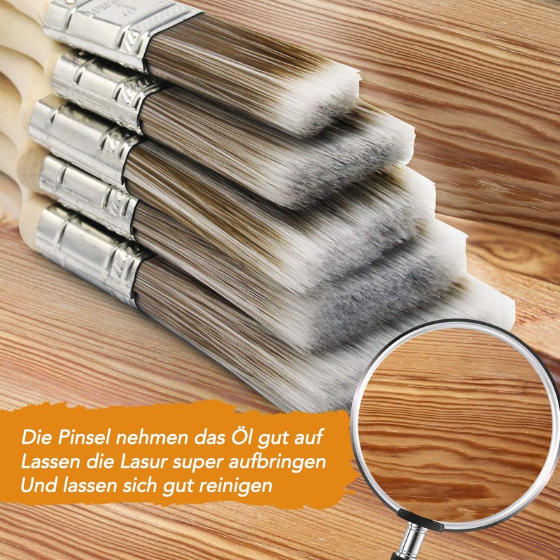 Set of 5 Flat Brushes for Wood Painting, Paint Brush for Glaze and Paint, Professional Paint Brush Made of Synthetic Fibre, No Bristle Loss