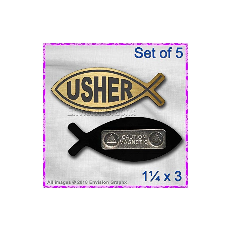Set of 5 Gold Plastic Church Usher Badge w/Magnet Jesus Fish Shape