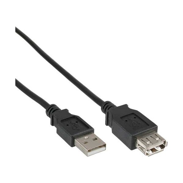 USB plug type A to female type A, compatible with USB 2.0 standard, colour: black, double shielded in polybag with EAN code.