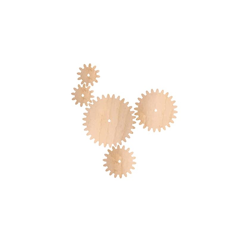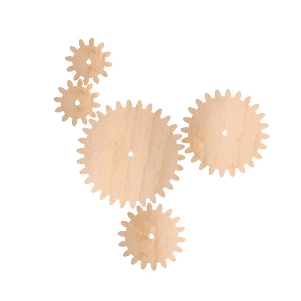 Set of 5 Wooden Interchangeable Wood Gears. Works for DIY Craft Project, Wall decor, or Functional Mechanisms 1/4" Thick Wood.