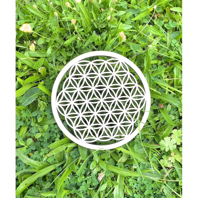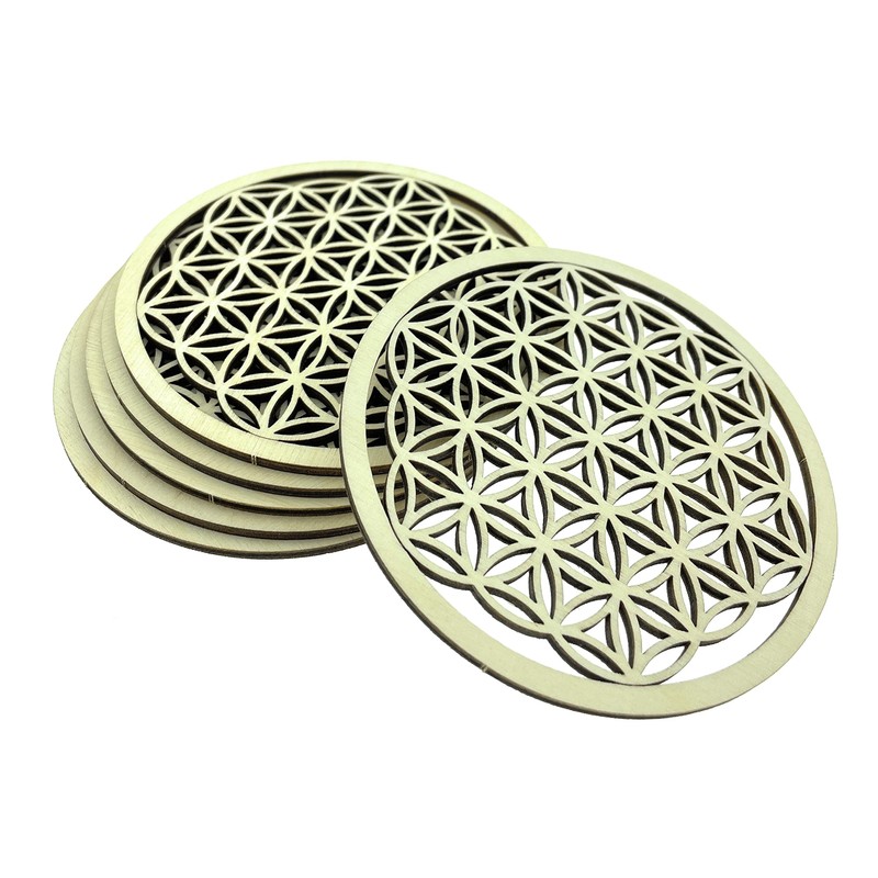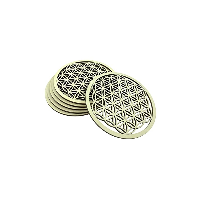 Set of 6 Coasters Flower of Life Birch Wood Diameter 10 cm for Drinks Coffee Tea Decoration Meditation (Set of 6 Flower of Life)