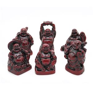 SET OF 6 HAPPY BUDDHA STATUES 2" Red Color Resin Hotei Fat Laughing Feng Shui