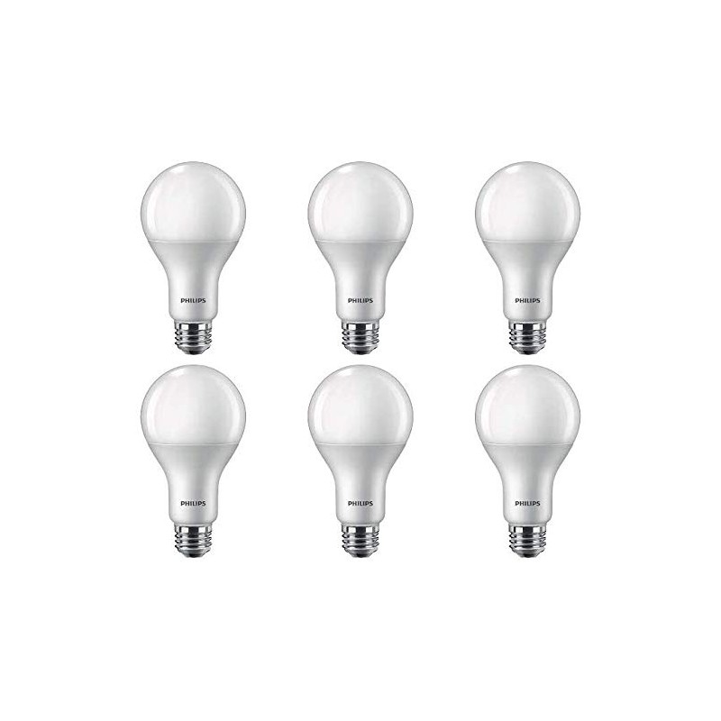 Set of 6 LED A21 Standard Base Phillip Non Dimmable Bulbs - 18w - 1500 Lumen 5000k Daylight - Perfect for General Home Use