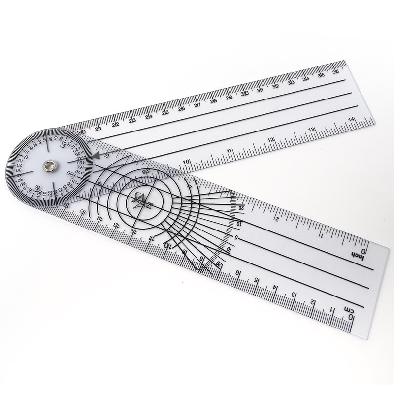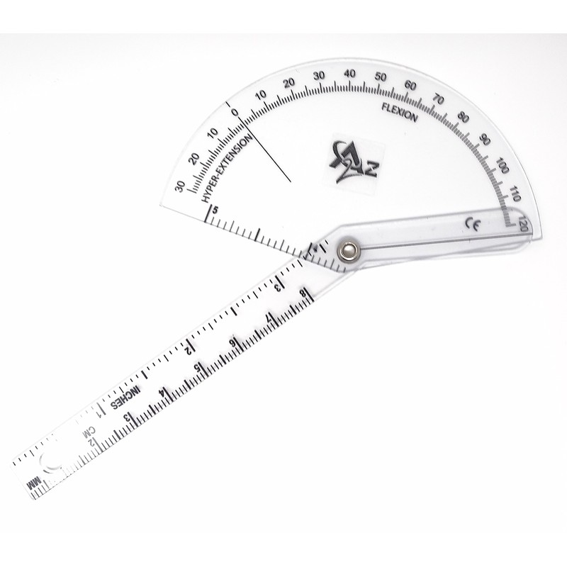 - Measurements in inches and centimeters are on the arms. The clear plastic permits observation of the joint's axis of motion and range of motion.