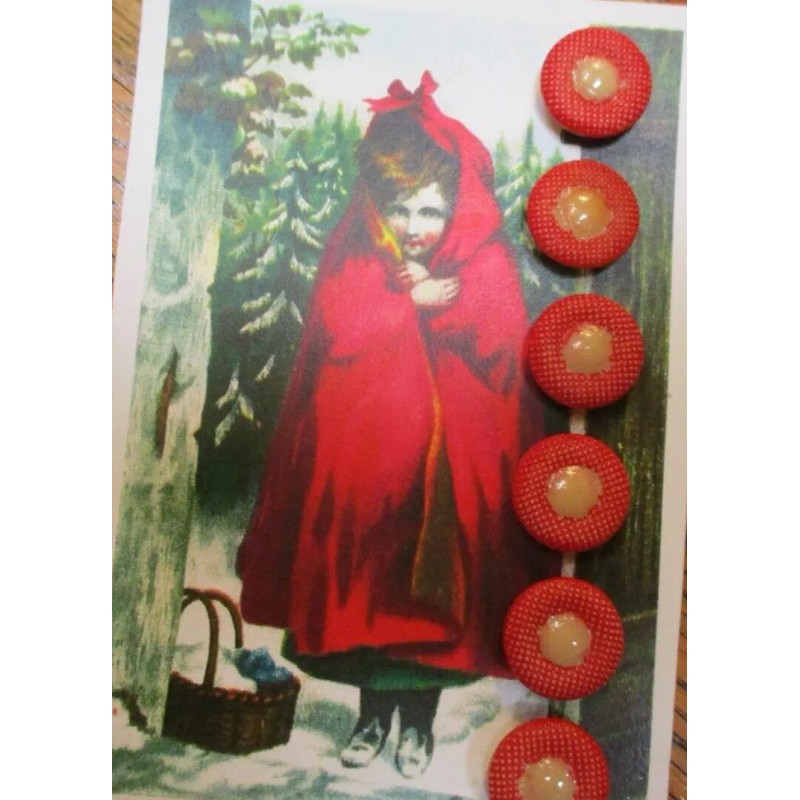 Set of 6 Vintage 1/2" Red painted dimple dot Glass Buttons ~NOS