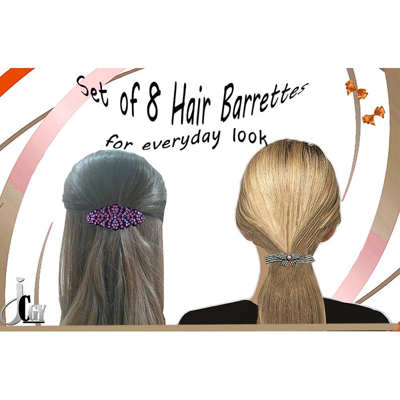 - Please check all pictures for color and size of all 8 barrettes offered in the set of 8