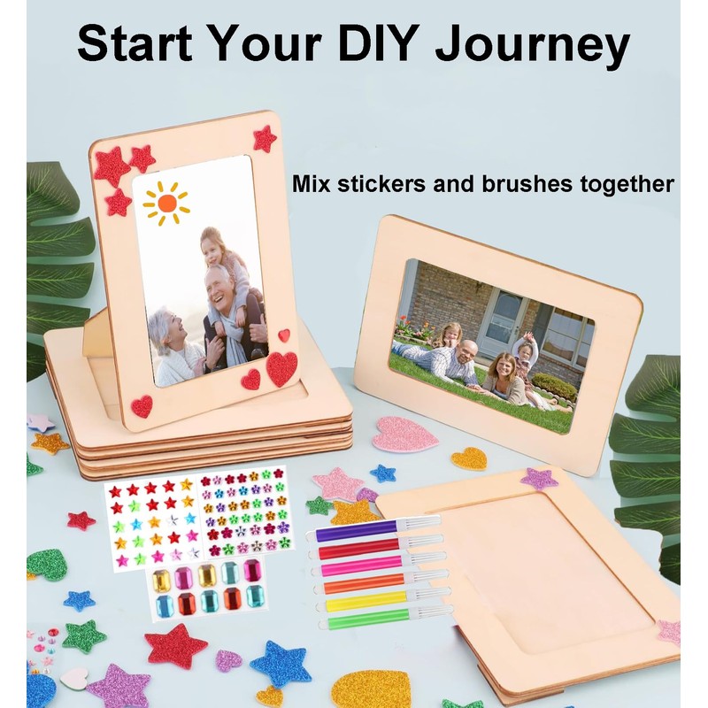 • DIY pleasure: Create a unique artistic photo frame: Relax with these DIY wooden picture frames and give your family members time to enjoy and build a warm bond. Let them explore different patterns and shades with the self-adhesive glitter foam stickers and draw with coloured pens.