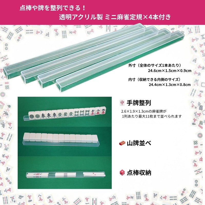 - Mini Mahjong Ruler: Easy to line up your hand cards, and can be used as a replacement for a frame. Great for beginners and facility play