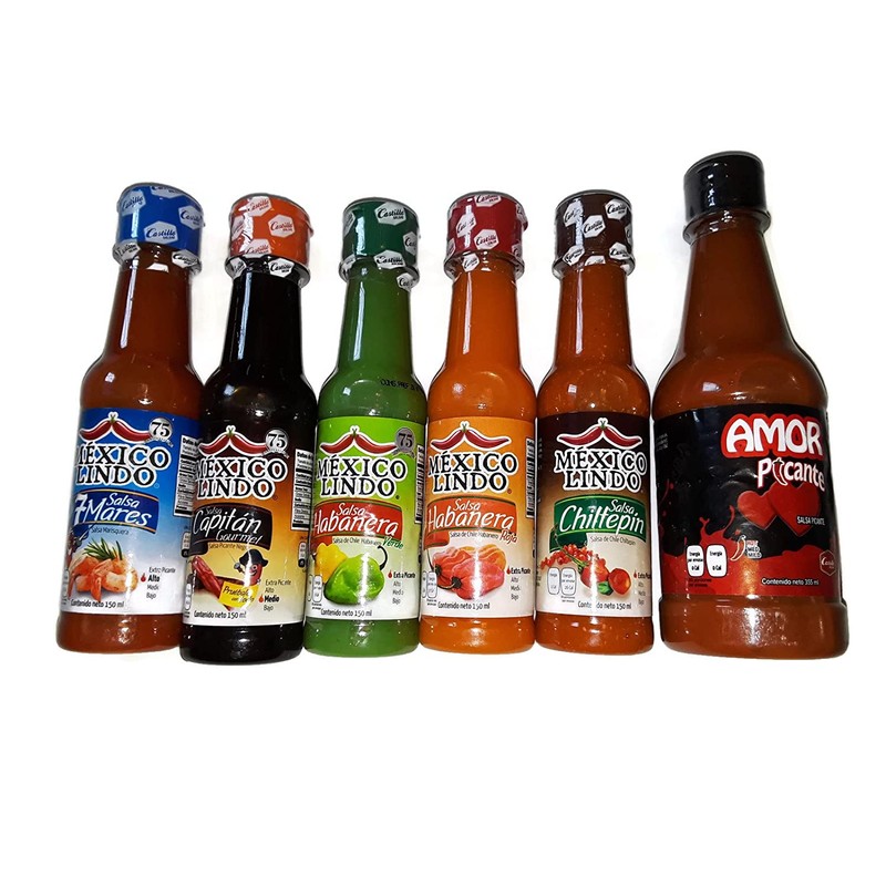 - Gourmet Castillo Mexico Lindo Hot Sauce Salsas Variety Bundle, 5 fl oz (Pack of 6) includes 1-Bottle Habanera Roja + Habanera Verde + Marisquera + Chiltepin + Negra + Salsa Amor