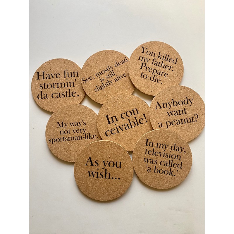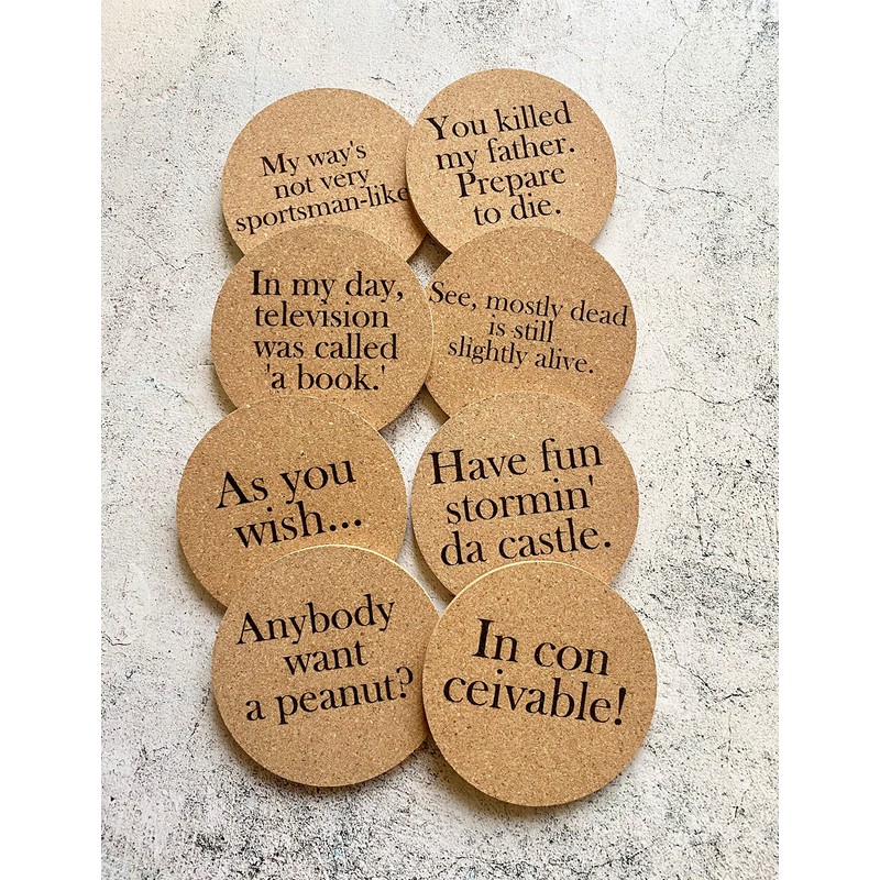 Set of Eight Princess Bride Quote Cork Coasters