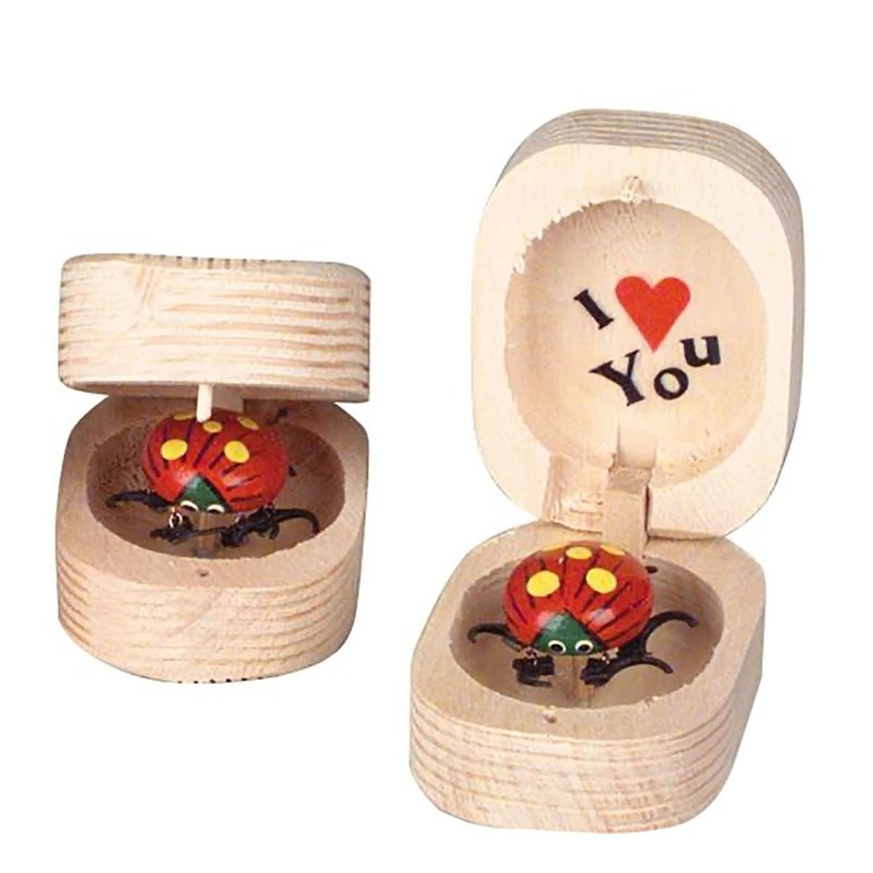 Set of Love bug in Box Novelty Gift - Bugs Legs Wiggle So it Looks Alive - Wooden Hinged Box Nut Ladybug Beetle (Random Colors) (Bulk - Set 12 Bug Boxes (1 Dozen))