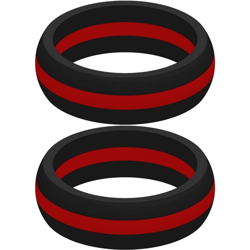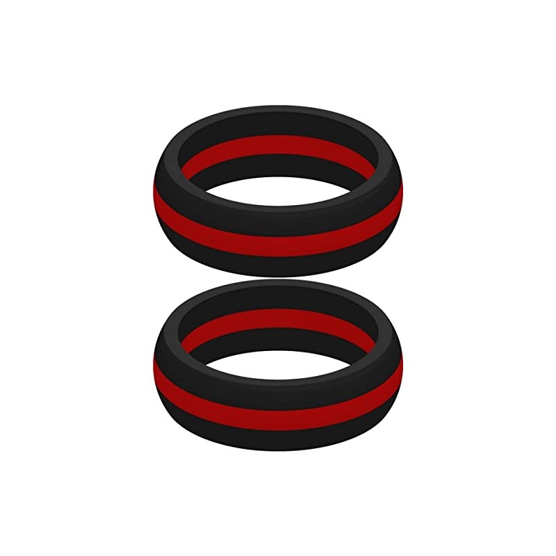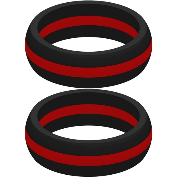 Set of Two (2) Thin Red Line Silicone Rings Size 8 - Engagement Wedding Replacement Band for Active and Workout Lifestyles - fire Fighter Support