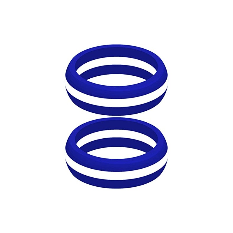 Set of Two (2) Thin White Line Silicone Rings Size 8 - Engagement Wedding Replacement Band for Active and Workout Lifestyles - EMS Support