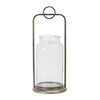 Set of Two Bronze Metal and Glass Tabletop Hurricane Candle Holders