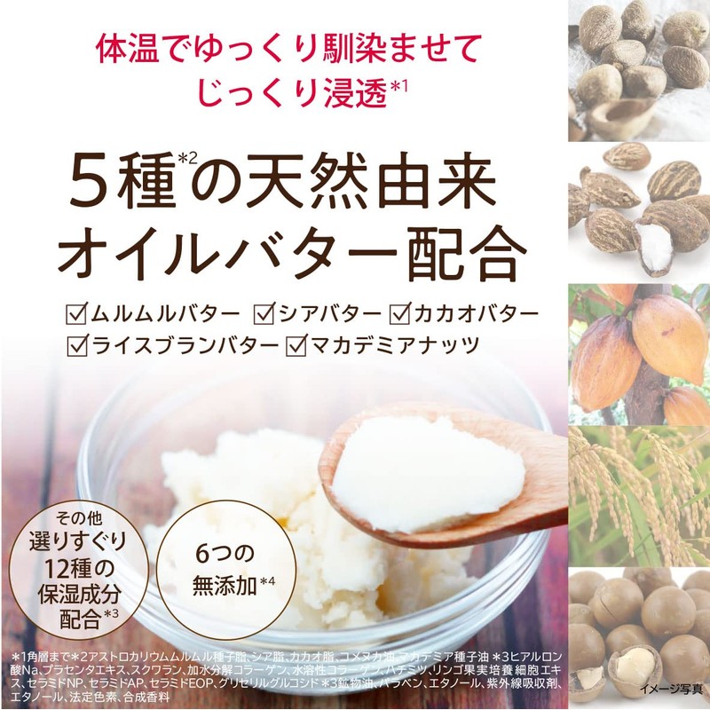 • Formulated with 5 types of natural oil butter (Mulmulmulmulmulbutter shea butter cacao butter rice bran butter macademy nuts)