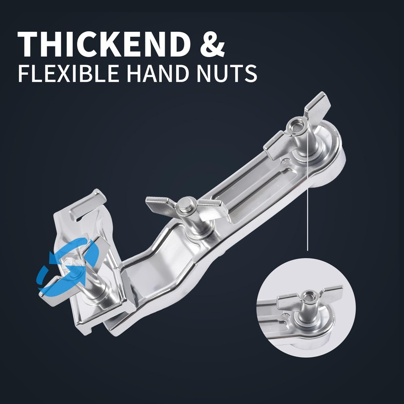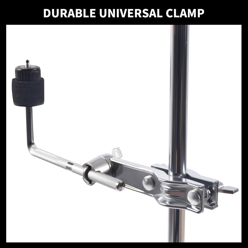 - đ„ăUniversal CompatibilityăFeatures a strong mounting clamp that easily attaches to any drum stand, making it ideal for percussion instrument kits. The cymbal boom extension arm clamp provides extra reach, giving you more positioning freedom.