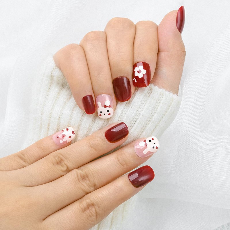 - Exquisite Design: The combination of super short square nails, cute rabbit patterns and floral patterns are completed, with a vibrant and passionate red color scheme that creates a sweet and lively atmosphere. Wearing effect is like a nail salon, more cost effective, handmade manicure allows you to experience top-notch manicure without leaving your home for less money