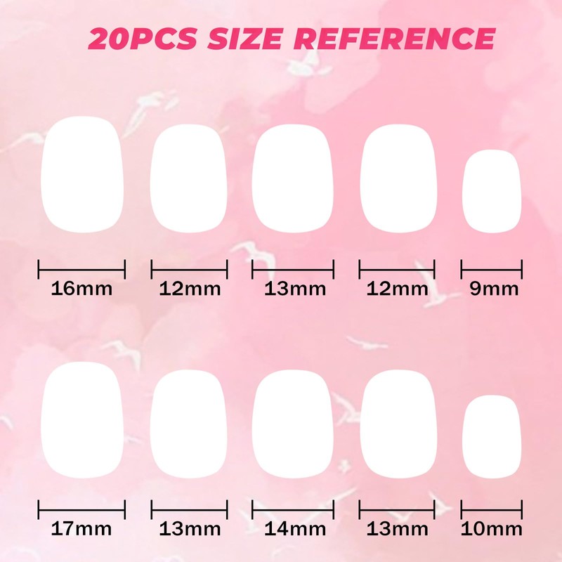 • 【How to use】First, clean your nails. Second, choose the corresponding size of fake nails. Third, paste the nail with jelly glue or glue and press for about 40 seconds to finish wearing. It is recommended to use jelly glue, it will not harm the nails and can be used repeatedly.
