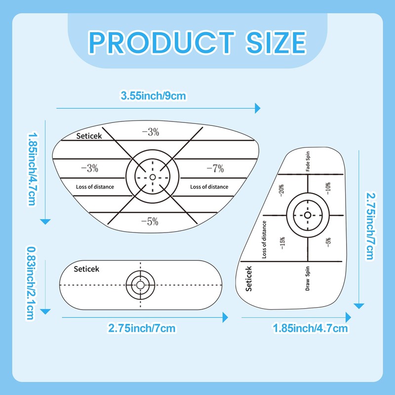 - 【Improve Your Swing Consistancy】If the ball is hit in the sweet spot, it will fly with the best flight curve and reach the best length. Our golf sticker pattern accurately shows the percentage of distance loss on shots off the sweet spot, which is useful to help you adjust your swing and your posture on each shot.