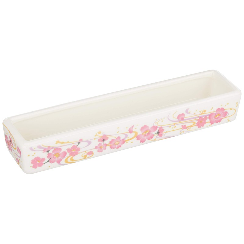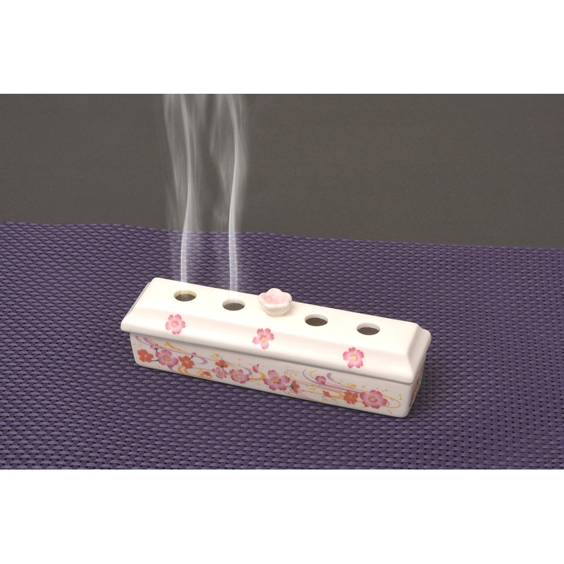 Seto Pottery Co. 20218198 Seto Pottery Incense Burner Plate, Lying Use, Cherry Blossoms, White, Pink, Approx. Depth 2.5 x Width 7.2 inches (16.5 cm) x Height 2.2 inches (16.5 cm) x Height 2.2 inches