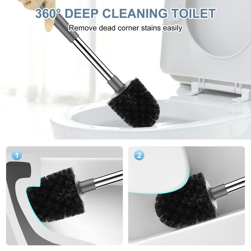 - ERGONOMIC HANDLE & ELEGANT APPEARANCE:Powerful long handle toilet brush, ergonomic design, more comfortable to hold and effectively control the cleaning effort, stylish appearance, compact and convenient, can also be used as a bathroom decoration