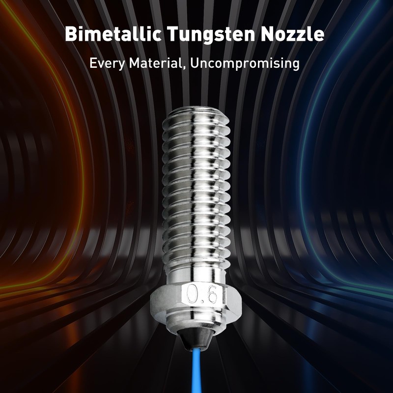 - High temperature performance:✔Tungsten carbide bimetallic nozzles offer excellent high temperature performance for stable printing at elevated temperatures. With excellent thermal conductivity and high temperatures up to 550°C, it is ideal for demanding applications and minimizes the risk of clogging.