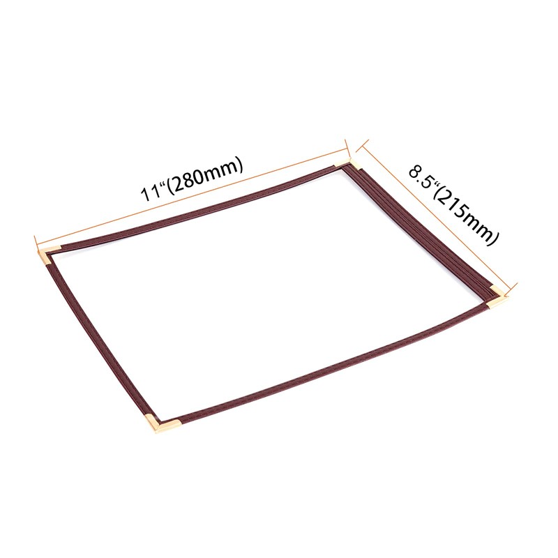 - ELEGANT DESIGN - Come with double stitched leather and golden corner protectors, these 8.5 x 11 menu covers are sturdy and strong, can well protect your menu and elegantly present them. They are suitable for from casual to high-end restaurants and bars.