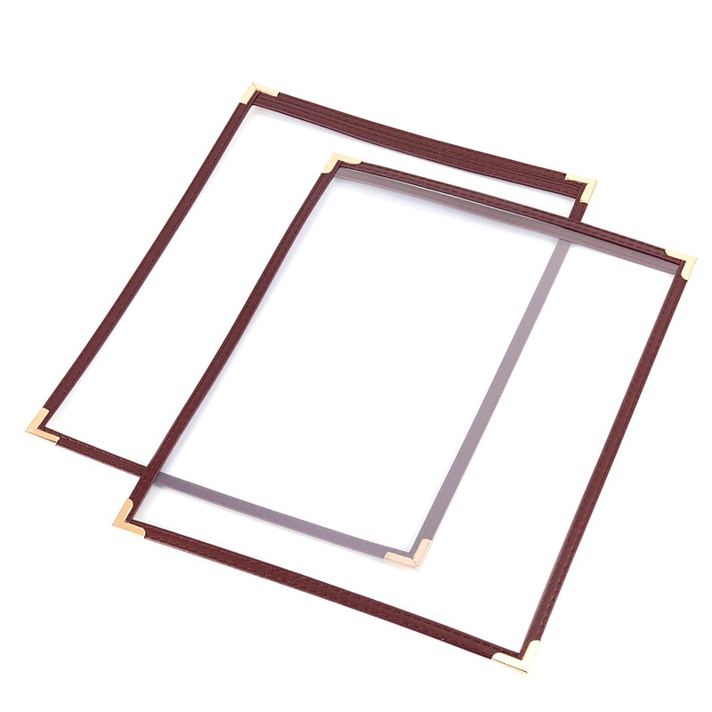 These single page menu sleeves 2 view are simple to use by simply sliding in the menu. They can can fit 8.5 x 11 inches paper and display front and back 2 views. They are also very easy to clean with a wet cloth.