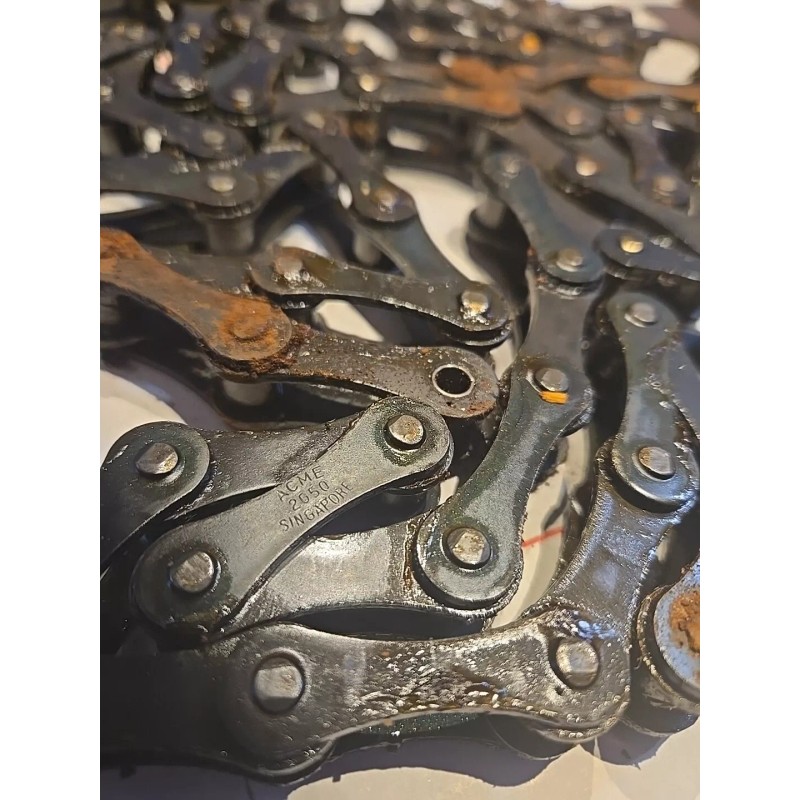 This is a rare find for collectors of antique tools and hardware. The Seven Boxes ACME chain from Holyoke, MA is a unique piece that will surely make a great addition to your collection. Made in Singapore, this chain is a testament to the country's rich history and industrial heritage. Its intricate design and high-quality construction make it a valuable item for display or practical use.