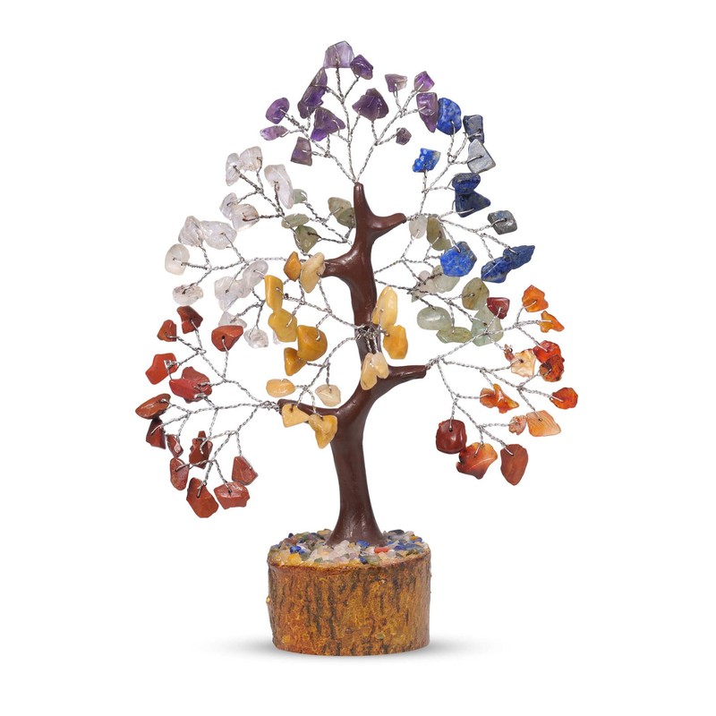 - Crystal Bonsai Tree - A beautiful one of a kind handcrafted 7 chakra tree which is made of seven chakra stones and crystals attached with the help of silver wire to the wooden base. Crystal tree of life size is 7-8 inch approx. Crystal trees help to remove the negative energy from your space, enhance luck, power, bring prosperity and generate positive energy.