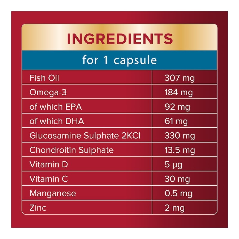 - 3 KEY INGREDIENTS: Omega-3, Glucosamine and Chondroitin.