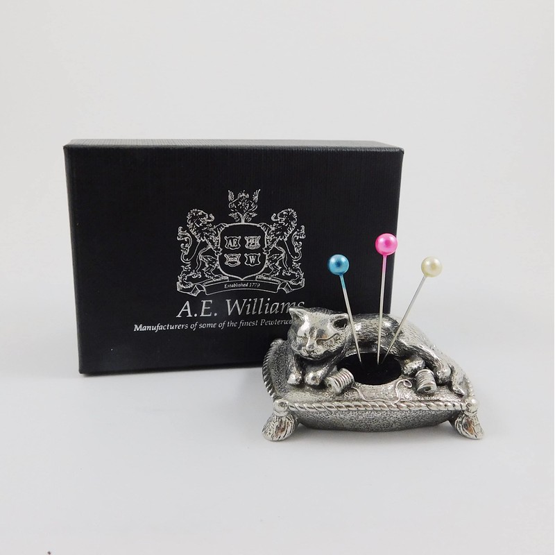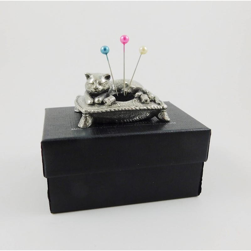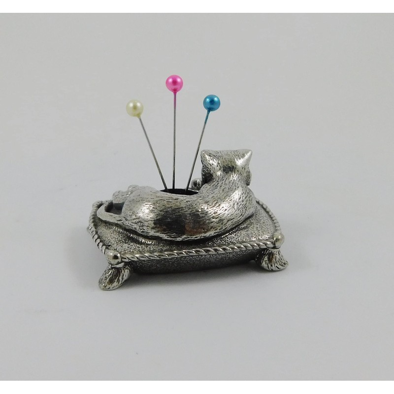 Seven Secrets Sleeping Cat Design Solid English Pewter Miniature Pin Cushion ...